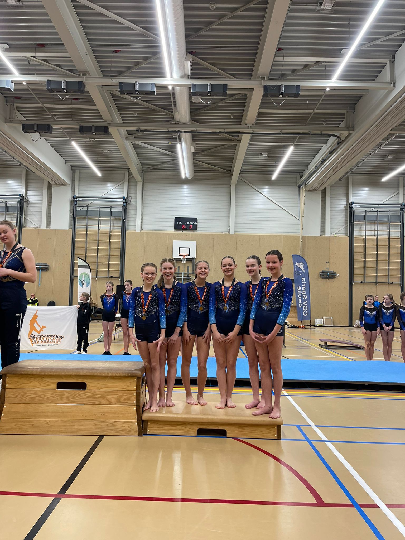Team 2 bestaande uit Maureen, Isa, Maud, Elianne, Floor en Merle turnde tegelijk aan de andere kant van de zaal. Zij begonnen hun wedstrijd op sprong en het lukte allemaal de sprongen te laten zien waar ze voor kwamen. Door naar brug waar her en der wat vallen geïncasseerd moesten worden🫣 De familie Lemans had hier overigens geen last van, want Floor en Isa behaalden dezelfde score die goed is voor een 1e plek🥇op dit toestel! Merle werd hier knap 5e!